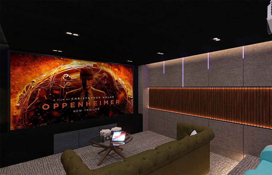 Transforming entire rooms into high- end theatres with acoustic treatments, advanced projectors, and luxury seating.